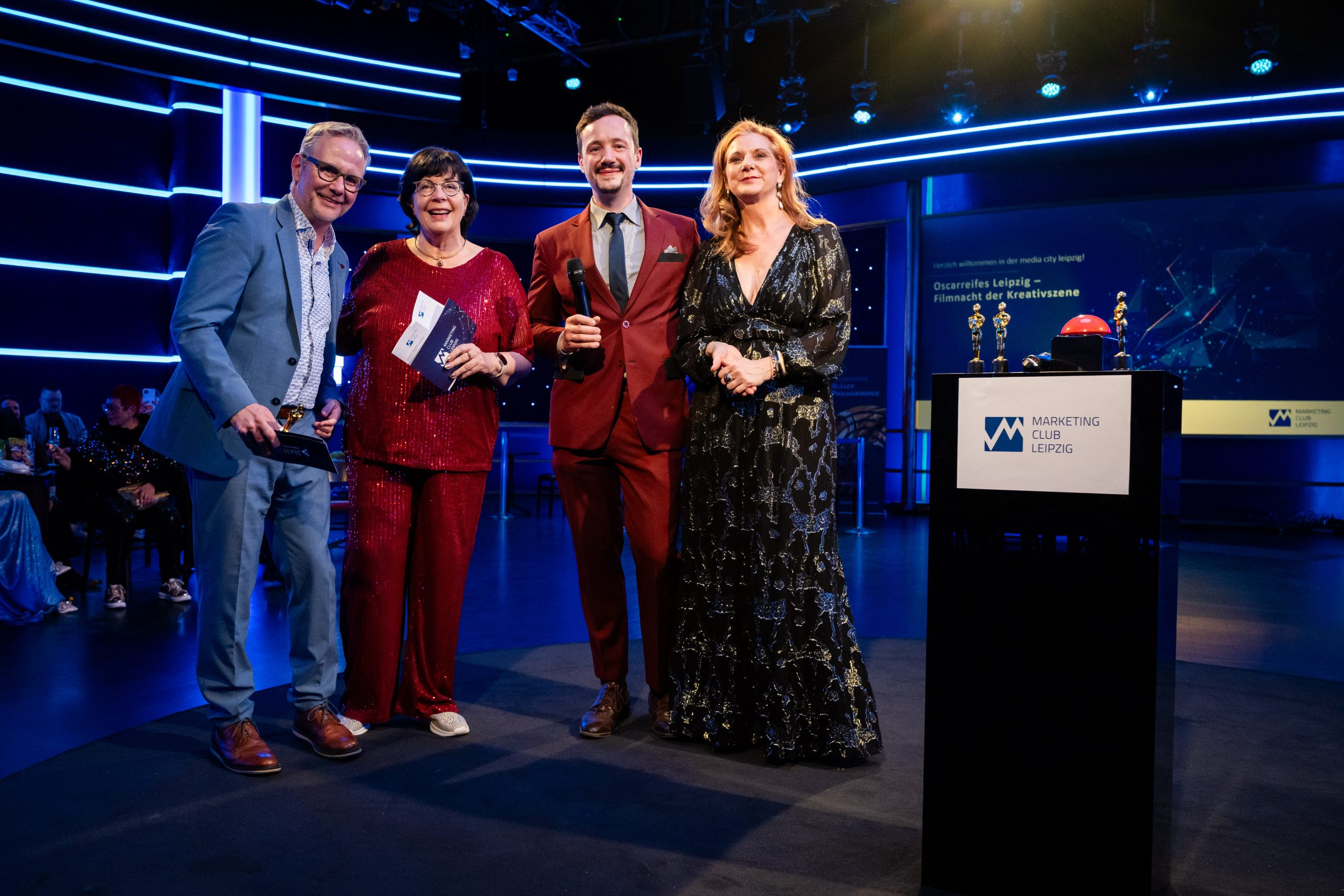 Dort, wo sonst Prominente im „Riverboat“ talken, machte eine kuratierte Filmschau mit 61 eingereichten Kurzfilmen aus der Region die Vielfalt der Leipziger Kreativproduktionen sichtbar – von Kampagnenfilmen über Recruiting-Clips bis hin zu Image- und Markenproduktionen. „Die Vielfalt der Leipziger Kreativszene haut einen einfach um. Wir brauchen uns definitiv nicht zu verstecken“, zeigte sich MCL-Präsidentin Dr. Ines Zekert von den Filmen begeistert und versprach: „Das Ganze war diesmal ein Pilotprojekt – und es war ein voller Erfolg. Wir werden eine solche Filmschau auf jeden Fall wiederholen.“