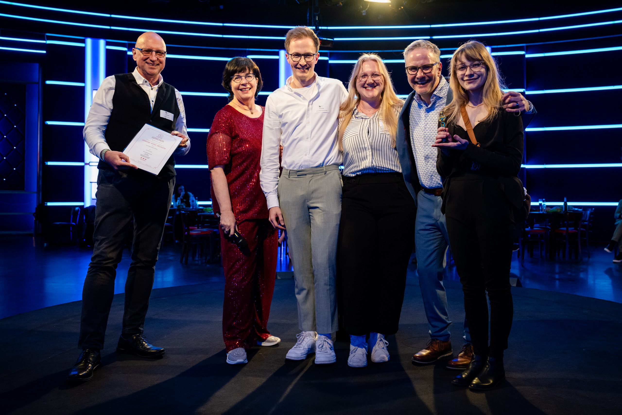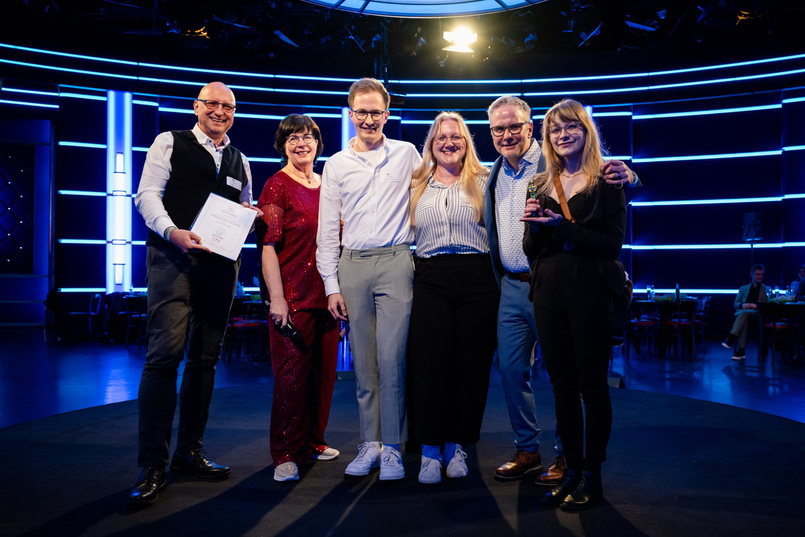 Nachdem alle Filme gezeigt worden waren, durften die Gäste über die drei Sieger abstimmen. Dafür hatte jeder Gast drei Stimmen. Am Ende holte sich mit 31 Stimmen die Sons of Motion Pictures GmbH für den Film „Sozialexperiment der Leipziger Gruppe“ den 1. Platz. Neben einem goldenen Mini-Oscar konnte sich die Kreativagentur über zwei Tickets für den Zukunftskongress der 2b AHEAD ThinkTank GmbH am 6. und 7. Juni in Leipzig freuen. Platz 2 mit 27 Stimmen ging ebenfalls an Sons of Motion Pictures für den Imagefilm der Windeck Metallbau GmbH. Den 3. Platz belegte mit 18 Stimmen Alexey Bokov für ein Reel über Leipzig.