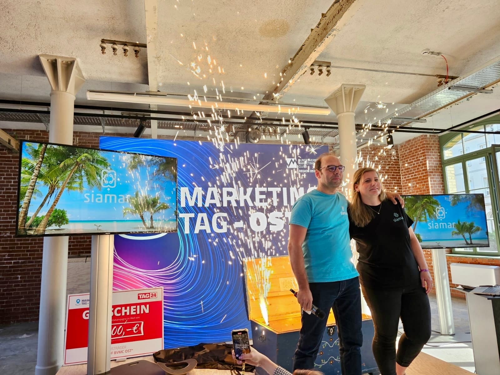 Nicht zu vergessen: der mitreißende Pitch um den Award des Marketing Preis der Region Ost, bei dem Siamar als strahlender, wohlverdienter Sieger hervorging. Zum Glück haben sich die Rauchmelder von so viel Feuerwerk nicht aus der Ruhe bringen lassen. Herzlichen Glückwunsch an Siamar – was für eine Leistung!